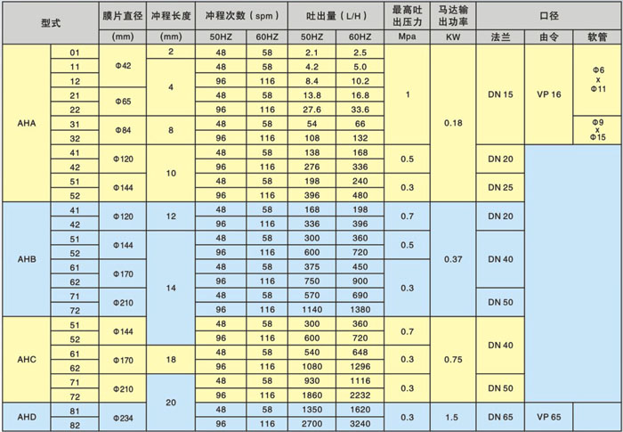 AH系列計量泵主要型號:AHA、AHB、AHC、AHD