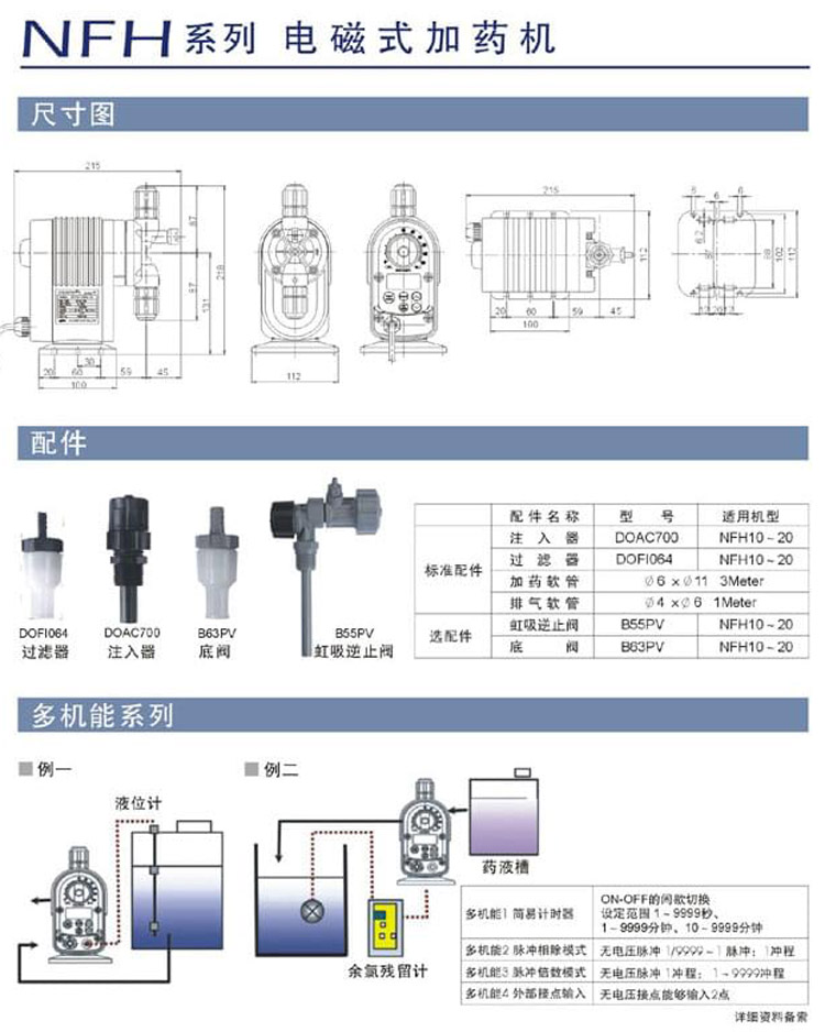 • 產品描述:NIKKISO EIKO 結合電子與定量加藥機之技術,研發泛用型的電磁式加藥機,液體接觸部以優質之耐蝕材質為標準,外型精致,體積小,易安裝。NFH系列高精度、高效率、寬頻泛用電壓,適用地區廣。